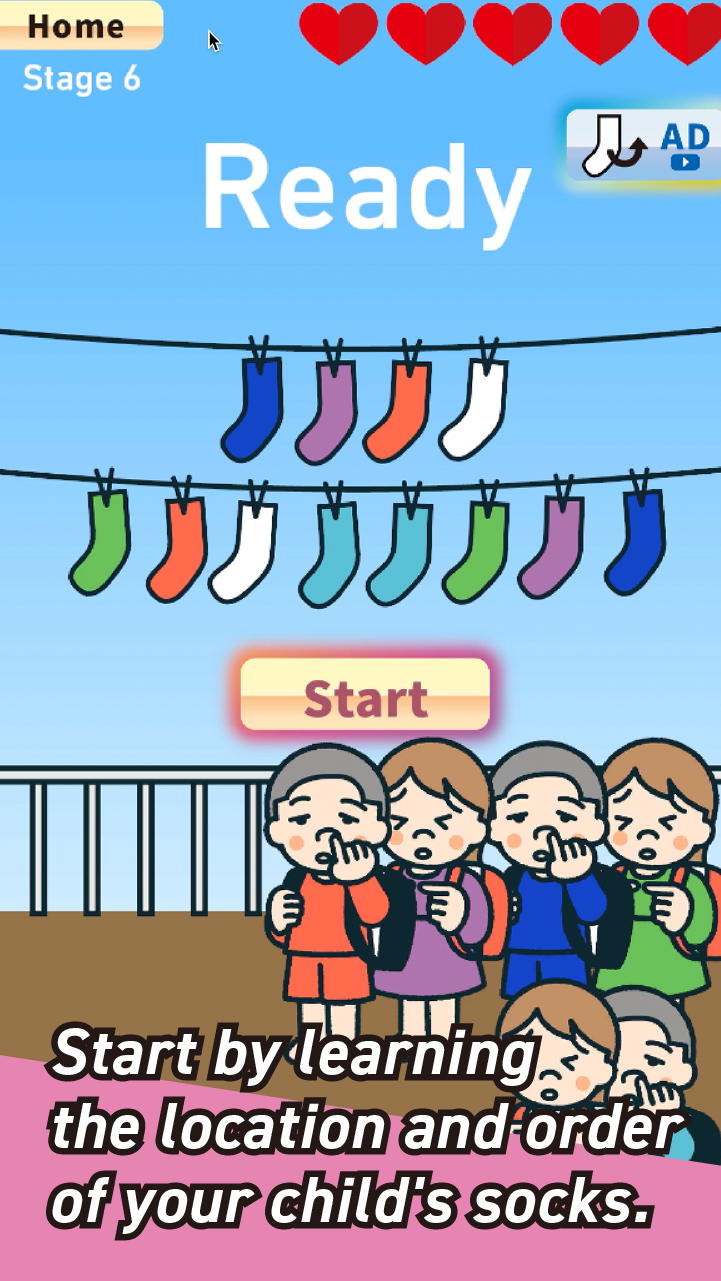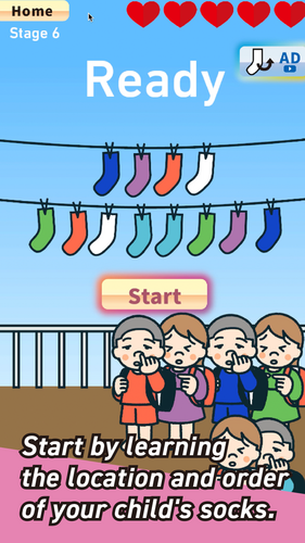 A simple but challenging memory game about matching socks! In this demo version, you can play 5 unique stages.