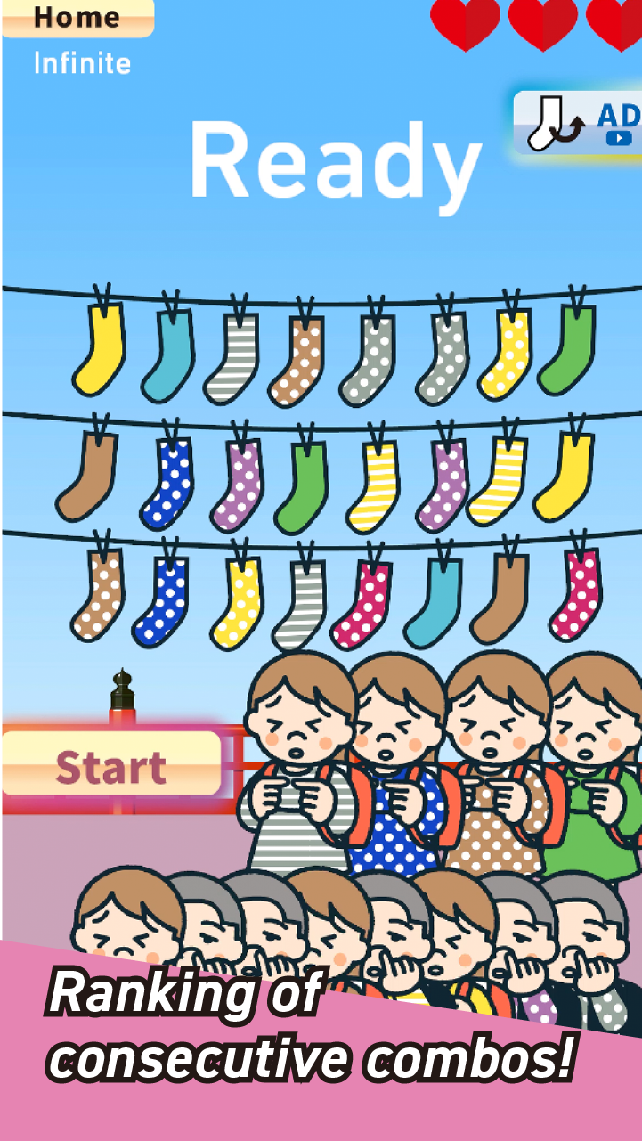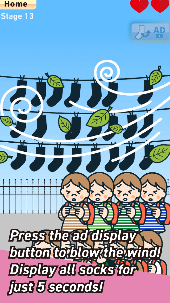 The full version features 15 stages with increasing difficulty and more cute sock designs! Can you complete all the pairs?